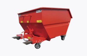 Une benne basculante évacue des déchets grâce à son système de déverrouillage automatique et son V.S.A, chacun breveté par GECO. Son contenu est ainsi versé par déclanchement. La benne basculante est prévue pour être manipulée au chariot élévateur. Elle peut accueillir différents déchets tels que du carton, du bois, du papier, des copeaux, des découpes animales (os, viande) du plastique, des gravats, DIB etc.